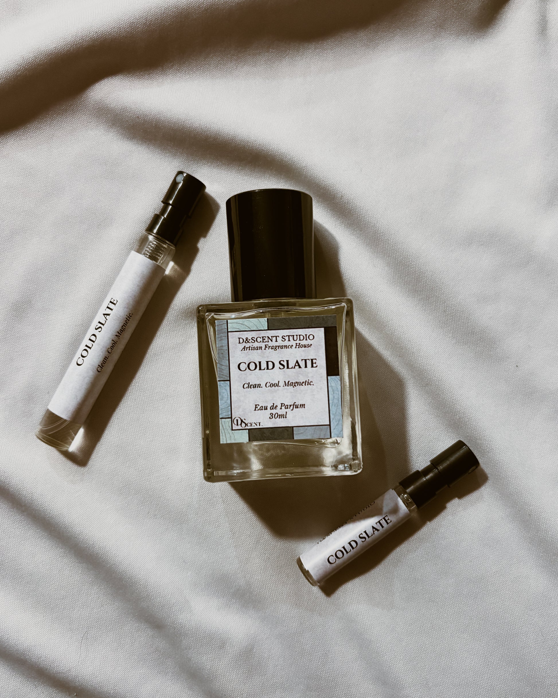 Cold Slate feels like stepping out of a warm shower into crisp morning air. It opens bright and cool, with a touch of citrus that’s instantly refreshing. As it settles, the soft woods and light musk give it that clean, effortless vibe. The kind of scent that just makes you feel pulled-together without trying. Simple, fresh, and quietly confident.